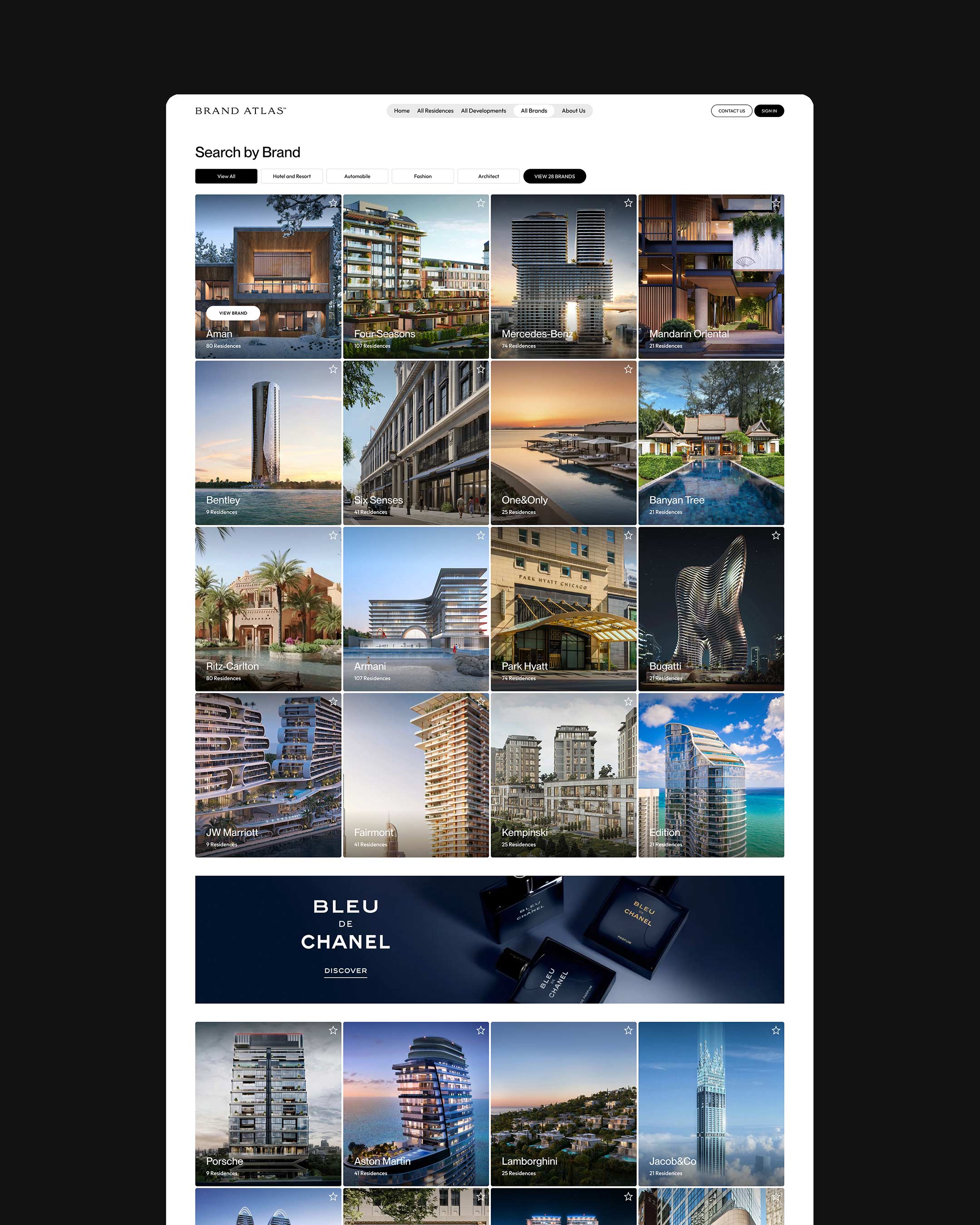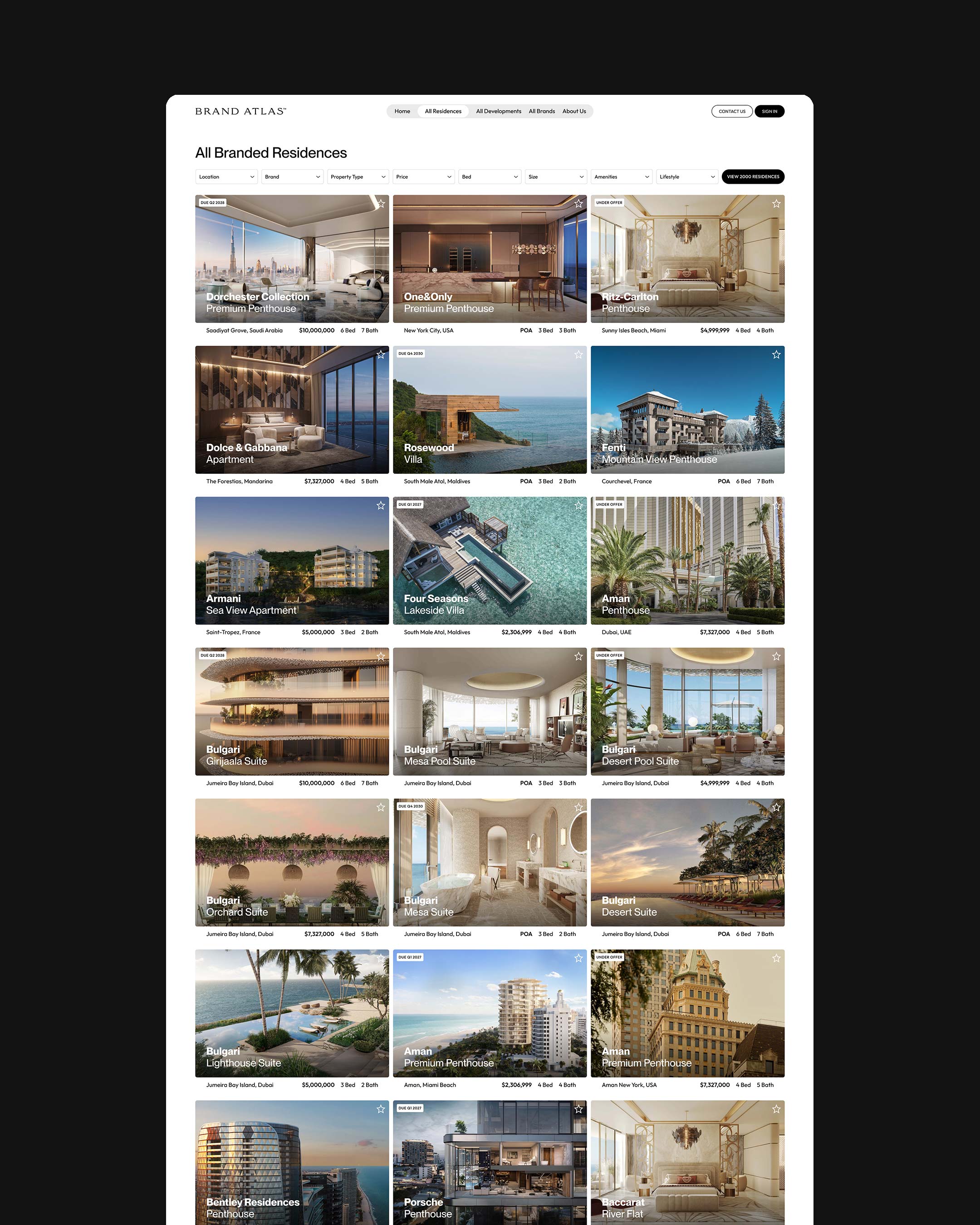 Brand Atlas is a startup operating within an emerging and largely untested market. As demand for branded residences accelerates globally, particularly across cities such as Dubai, Miami, and Bangkok, the opportunity was not simply to enter the category, but to define it. The goal was to establish Brand Atlas as the authoritative platform at the intersection of luxury brands, property developers, and ultra-high-net-worth buyers, positioning the business as both the definitive marketplace and a strategic advisor.